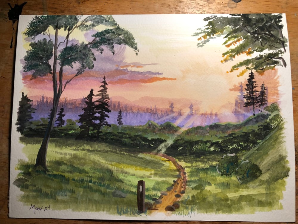Following the sun along the Trail. A big view during golden hour creating impossible colors both on the land and the sky.