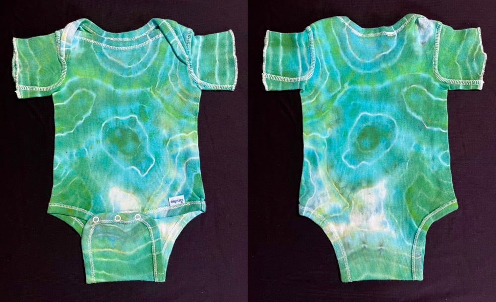 Newborn. 7” across, 12” long. 100% Cotton & metal button closures.