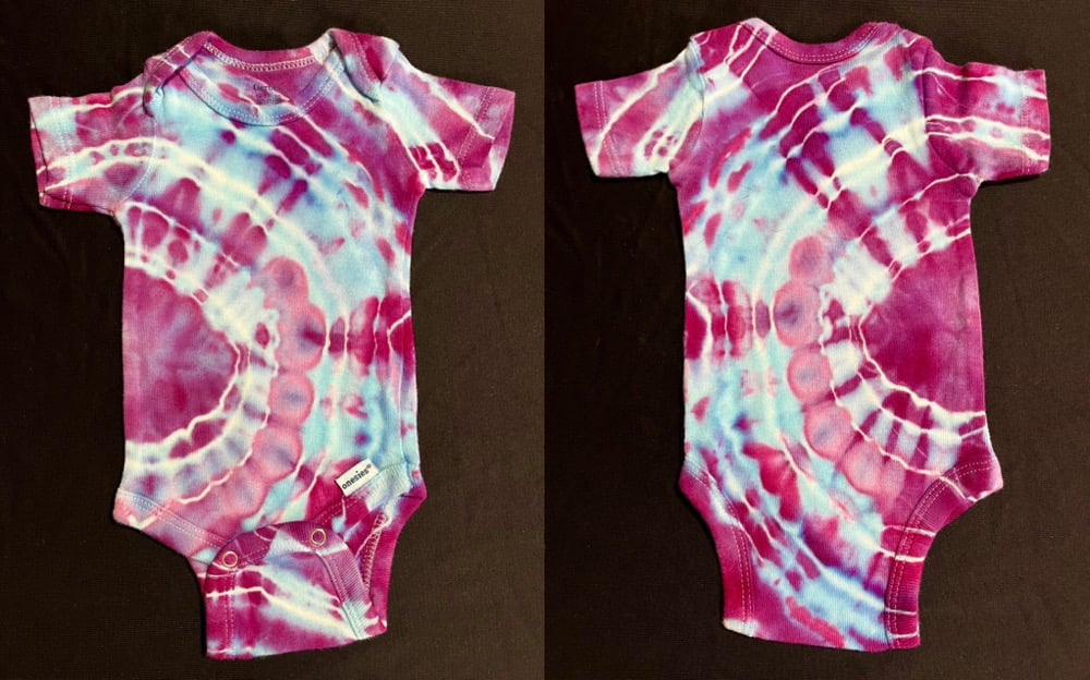 Newborn 5-8 lbs. 6” across, 12” long. 100% Cotton & metal button closures.