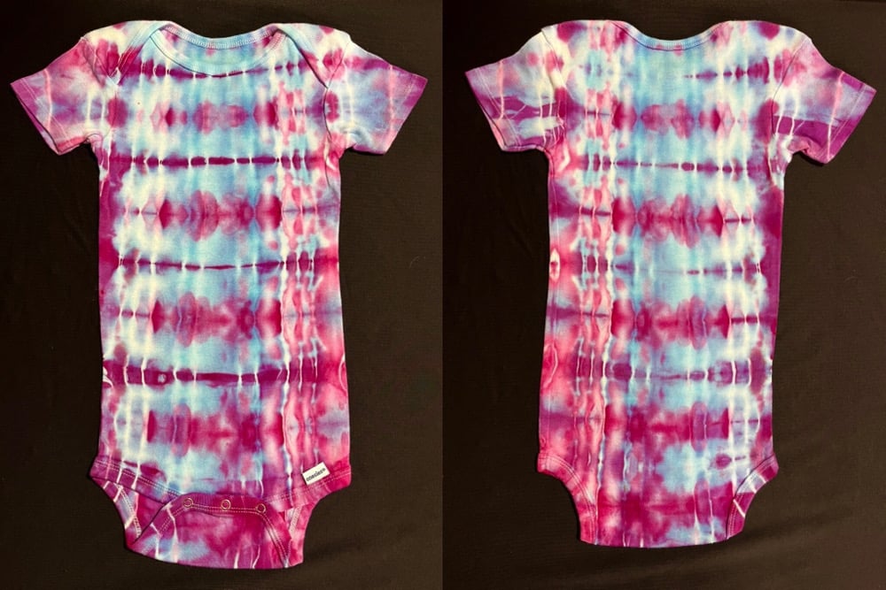 24 mo. 8” across, 18” long. 100% Organic Cotton & metal button closures.
