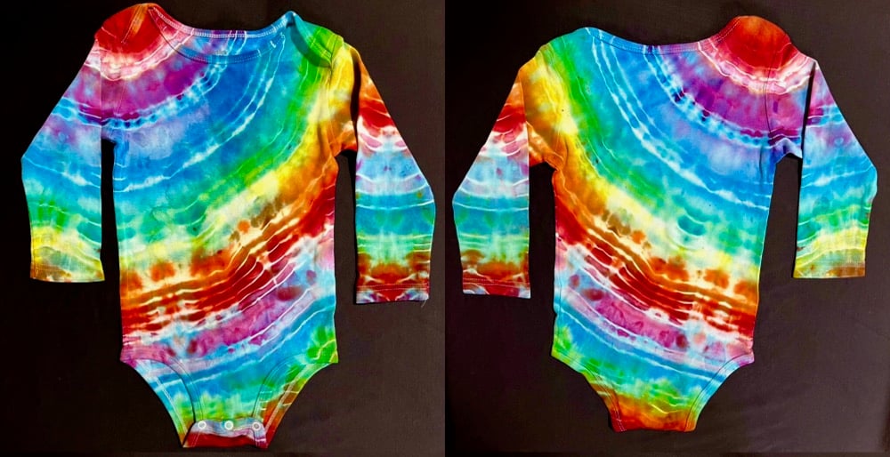 24 mo. 9” across, 18” long. 100% Cotton & metal button closures.