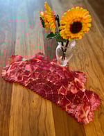 Red Pineapple Design Doily - 8”x15.5” - 100% cotton - handmade - crocheted - hand dyed - professional procion fiber reactive dye - upcycled - vintage - ice dyed - Great for a unique pop of color at the dining table or anywhere some upcycled art is needed in your life. Lots of great ways to use linen napkins & doilies, such as a Table centerpiece, sacred altar cloth, hair accessory, wall hanging, quilting or crafting addition, and more!