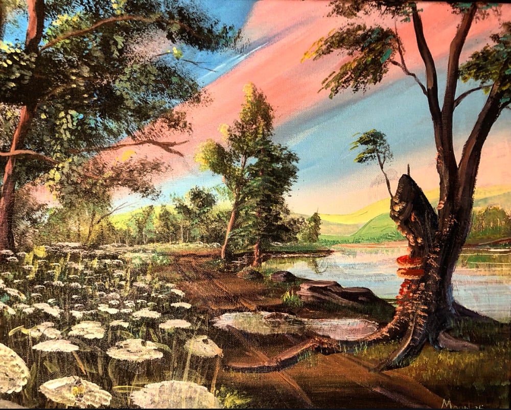 Now, light years from my skill set when I originally painted the beach piece back in 22, its now an old dirt road along the river bank. Playing with light as it casts shadows on the ground.